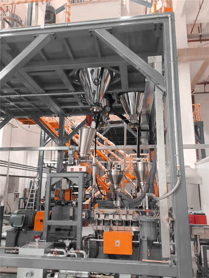 失重式喂料機由料斗、喂料器(單、雙軸螺旋喂料器)、稱重系統(tǒng)和調(diào)節(jié)器組成,在操作中,料斗、物料和喂料器共同連續(xù)地進行稱重。隨著物料送出后,測量真實的失重速率,并將它與所需要的失重速率(設定值)加以比較。通過調(diào)解喂料器速率來自動修正偏離設定點的偏值。從而可以均勻準確地連續(xù)喂送物料。