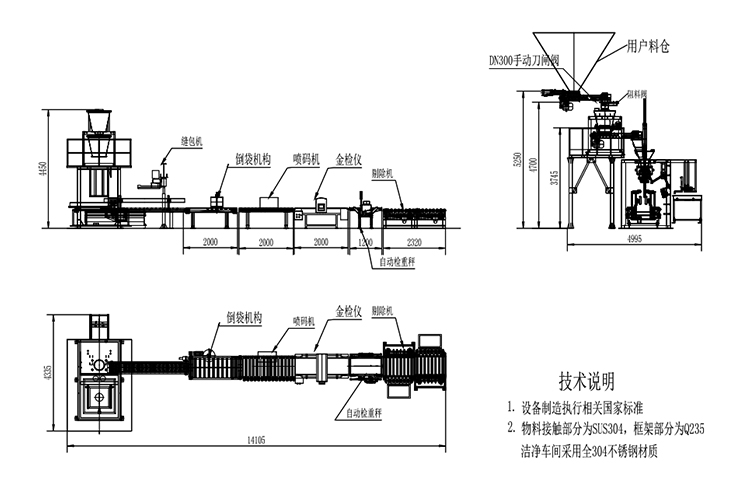 備注:收口后,物料上部至袋口的間隙應(yīng)大于200mm(視具體物料而定)。